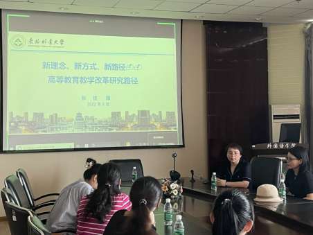 2022年6月27日15:30,bat365正版唯一官网通过线上线下相结合的方式举办了一场教学改革系列讲座。本次讲座的主题为“新理念、新方式、新实效——高等教育教学改革研究路径”,bat365正版唯一官网董辉院长主持会议,主讲人为bat365在线平台官网教学研究与质量监控中心张佳薇主任,学院教师积极参会。