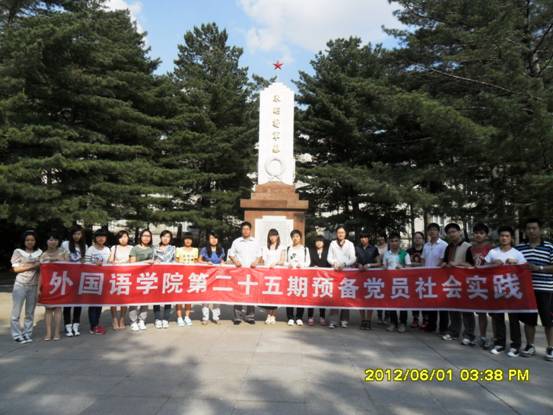2012年5月31日下午3时许,党校第二十五期bat365正版唯一官网预备党员学员组全体在党校班主任2010级政治辅导员张刚老师的带领下前往东北烈士陵园,围绕"像榜样学习,做一名合格的共产党员"进行了一次十分有意义的社会实践活动。