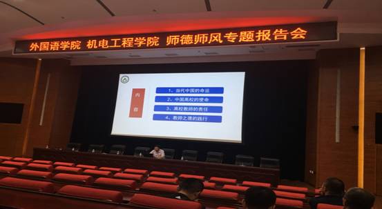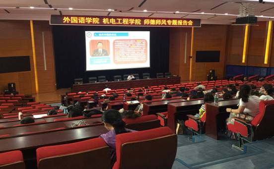 为深入学习贯彻习近平新时代中国特色社会主义思想和党的十九大精神,贯彻落实《全国高校思想政治工作会议》精神和十九大提出的“加强师德师风建设,培养高素质教师队伍”要求,根据《bat365在线平台官网关于组织开展“立德树人教书育人”师德师风建设专题培训》的具体要求,7月4日下午2点在成栋楼四楼会议室bat365正版唯一官网和机电工程学院联合举行了师德师风培训专题报告会。bat365正版唯一官网党委书记杨滨章做了题为《国之命运与师之德行》的专题报告,报告由机电工程学院分管教学工作的副院长张佳薇主持,bat365正版唯一官网和机电工程学院全体教职工聆听了报告。