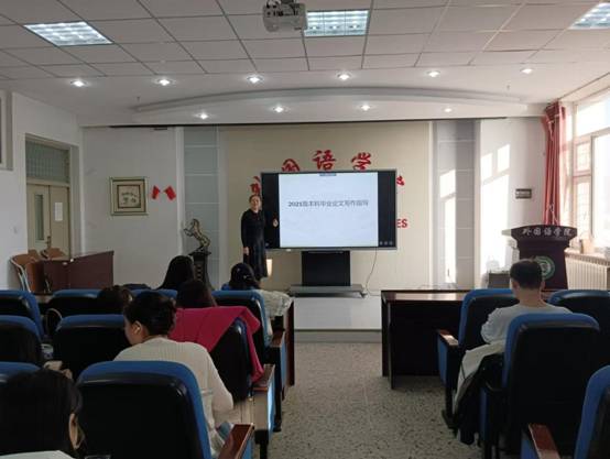 目前,日语系2021级学生正面临着毕业论文的选题确定、收集资料以及开题报告撰写任务。本次讲座首先针对学生在选题和构思过程中遇到的问题,具体讲解了毕业论文选题的注意事项、日语毕业论文的结构与各个章节中应解决的问题、学术论文论证的逻辑顺序与技巧以及论文中日语行文的规范与排版要求等问题。本次讲座还为学生们梳理了本科生毕业实习环节和毕业论文撰写及答辩环节的任务要点和日程安排,使学生们进一步明确了未来半年的学习任务,便于学生合理安排时间,有计划地完成毕业环节的全部重点任务。讲解后,日语专业2021级同学提出了许多关于上述环节的困惑,师生们在会场上共同探讨、相互借鉴,得到了很好的启示。